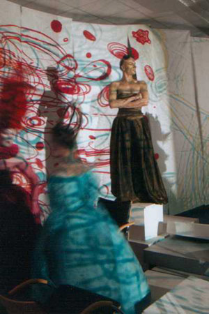 Sprechende, tanzende, singende, hörende und fühlende Räume wurden von Künstlern aus den Bereichen Komposition, Szenografie, Grafik, Choreografie, Kostümbild und Video im Kandinsky Haus in Szene gesetzt.