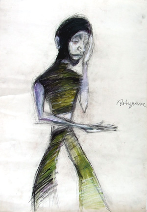 dantons todbüchner/ diplom kkh berlin. figurinen u. bühne zu „dantons tod“ waren teil meiner diplomarbeit im wendejahr 1990. es ist klar, in welchem starken ausmass die äusseren prozesse diese arbeit beeinflussten. als bühnenidee wählte ich eine auf dem kopf stehende textilfabrikhalle – eine ruine, auf einer hollandreise fotografiert. die überreste einer revolution - ruinen einer „abgegessenen“ zeit, einer zeit äusserster verwirrung, einer krisenzeit. ruinen von zeiten, die einander überlagerten und verschlangen, vergänglichkeit und ambivalenz der revolution signalisierend. die bühnenentwürfe entstanden collagenartig, indem ich figurinen und figuren im raum aktuell aus der tagespresse heraussuchte, meine entwürfe immer wieder um authentische fotos ergänzend. die bezüge zur ambivalenz revolutionärer prozesse konnten nicht authentischer sein, als in dieser zeit. |